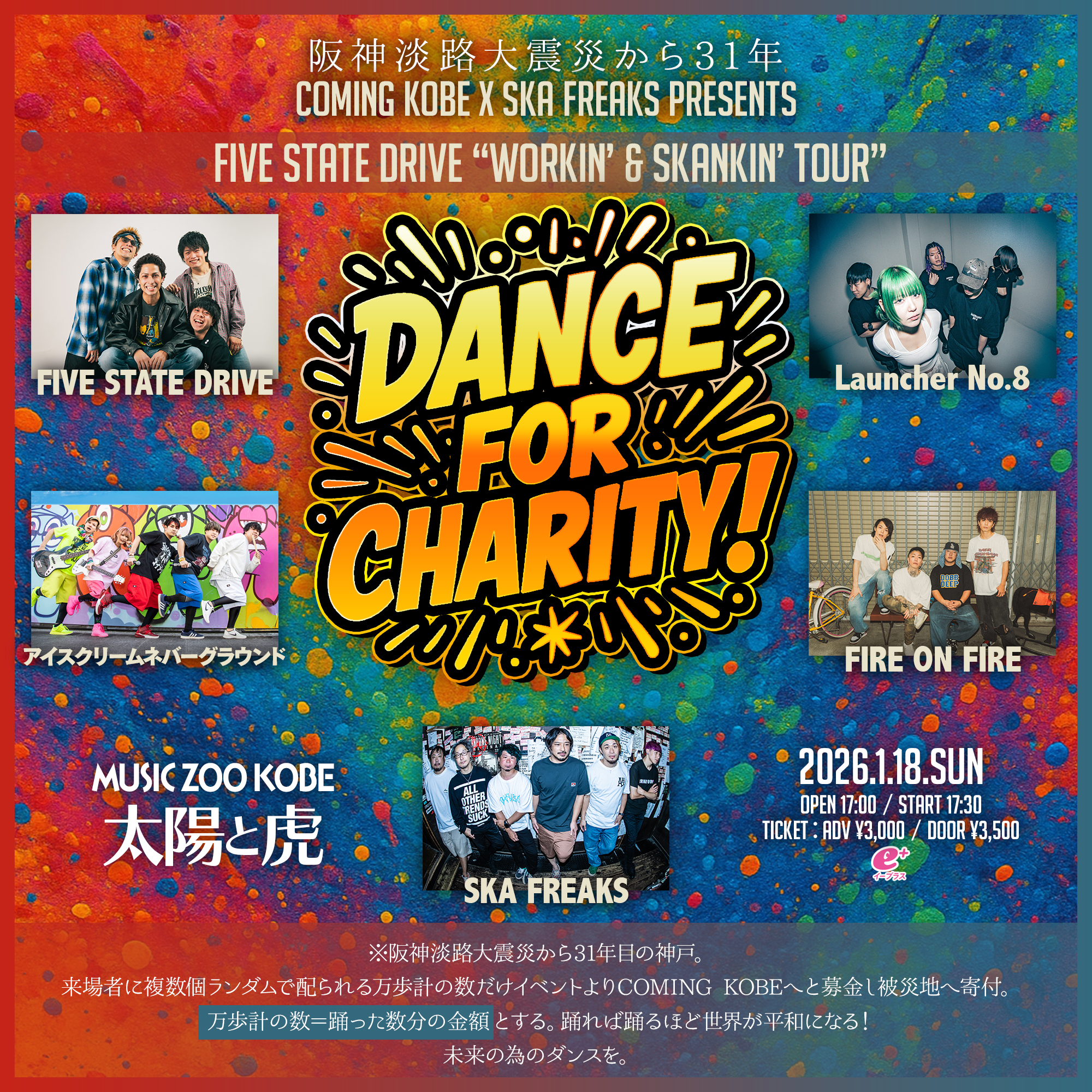 阪神淡路大震災から31年 COMING KOBE x SKA FREAKS presents Dance for Charity!